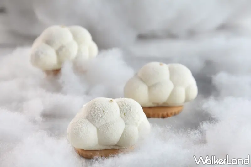 此外,外表猶如柔軟白雲的「雲朵蛋糕」則以法式手法設計,外表奶油嚴選百年歷史的法國巧克力品牌Weiss 29%白巧克力製成慕斯,質地綿密滑順,再噴上白色可可脂營造雲霧圍繞的視覺,夾層部分為香氣馥郁的荔枝香堤與香甜莓果凍層層堆疊,每一口都能品嘗到莓果凍微酸微甜的滋味,此外在底端再搭配酥脆餅乾增添層次,精巧的外表帶來溫暖柔細的口感,就仿彿漫步雲端,在天際翱翔。