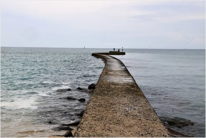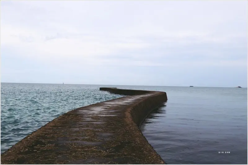 藍天白雲時你不會發現二側的海水其實顏色不大一樣,天色不好時你才會發現,右側的海水較黑較平穩,左側的較為透亮且海浪翻滾不已<全文介紹>