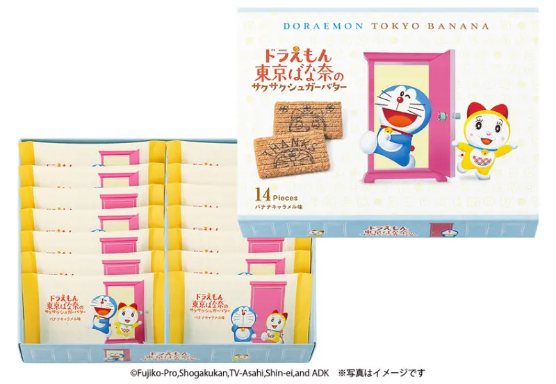 到日本旅行時,不少人必買的熱門伴手禮一定會有「東京芭娜娜」,這幾年來東京芭娜娜也不斷開發新型態的甜點,例如首度與哆啦A夢在2021年推出的「哆啦A夢半月法蘭酥」,至今買氣仍相當高,而且還為此特別開設了專賣店!延續這份人氣,東京芭娜娜預計將於4月25日開賣「香蕉焦糖砂糖奶油夾心餅」,上面印有相當多種哆啦A夢與哆啦美的圖案,模樣可說是可愛極了。