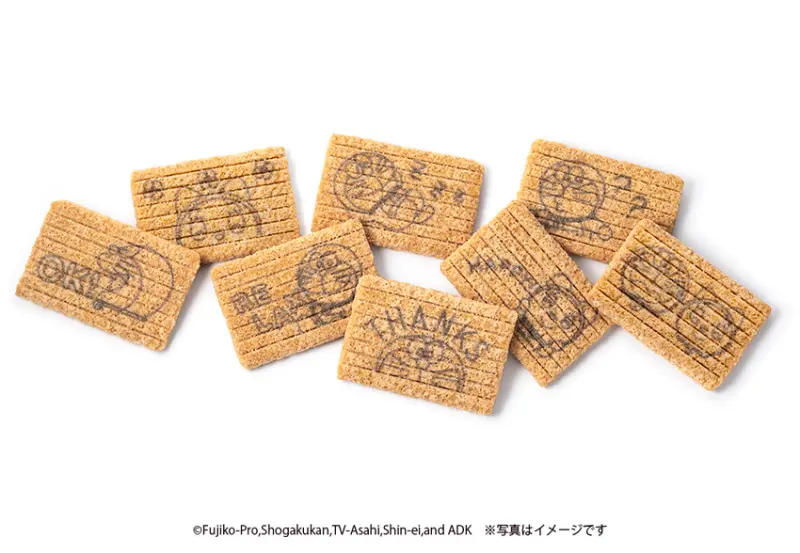 這款新品夾心餅乾是將日本國產米、黑麥、燕麥加入麵糰後烘烤製作而成,並使用了微甜的香蕉焦糖內餡,整塊夾心餅不僅會散發出溫和的奶油香味,吃起來酥酥脆脆還充滿了穀物香氣,讓人忍不住一塊接著一塊!而餅乾上則分別隨機印上了8種哆啦A夢和哆啦美各種豐富的日常表情,像是微笑、翹著腳悠閒睡覺的模樣,每打開一個新包裝,就有不同的驚喜。
