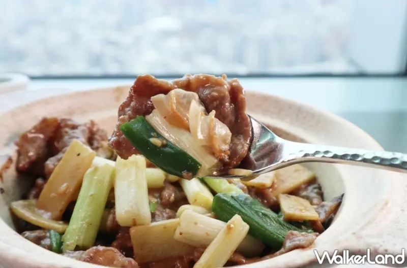 此外,還有必吃「蛤蜊薑蔥牛肉煲」,主廚說港人稱蛤蜊為蜆,廣東中山市小欖鎮盛產泥蜆,以風乾蜆肉、鹽、汾酒、加上炒過的薑絲和陳皮製成的「蜆蚧醬」,正是當地的特產,滋味鹹鮮,可做沾醬或是拿來入菜,蜆蚧雞、蜆蚧薑蔥牛肉都甚為普遍,主廚剛入行也以此做過菜,如今卻不復多見,但新鮮蛤蜊卻是個優質食材,主廚便想讓老菜重現,鮮味更甚。