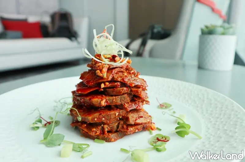 本次新菜單之中,首推「麻辣乾拌牛舌」牛舌料理在粵菜中不多見,但主廚私心偏愛,便在望月樓開幕時,做了個「豉椒爆牛舌」,薄切快炒,分秒必爭,熟度恰好,火爆噴香,廚功展露無遺。七年後此時,主廚再推慢工出細活的「麻辣乾拌牛舌」,讓要老饕們多一個話題、多一個美味可以品嚐。