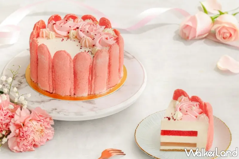 「玫瑰伯爵夏洛特」限定款六吋蛋糕以拇指型外觀亮相,口感似馬卡龍質地且略帶恬淡玫瑰香,嚴選90%法國進口食材,頂部妝點的玫瑰花內能嚐到細緻的法國草莓絲絨香緹,外圈玫瑰拇指餅乾如馬卡龍般脆糯,每一口都鑲藏著沁人花香及對媽媽的濃厚情感。其中內餡製程更是工序繁複,除皆採減糖30%的配比製作,讓媽媽入口無負擔、蜜而不膩外,共鋪墊三種口感、四層風味。
