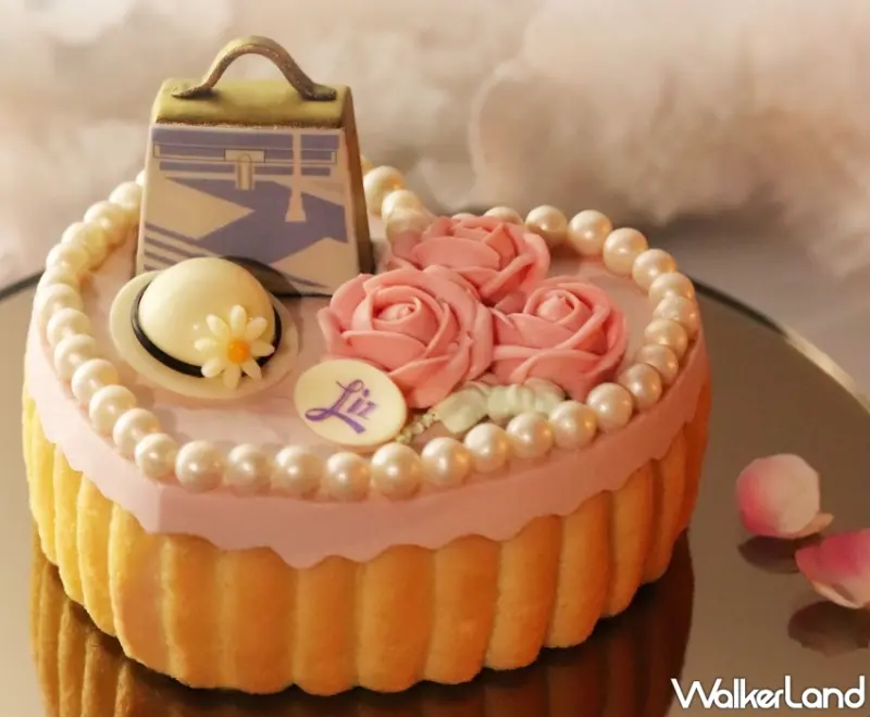 外層以鬆軟手指蛋糕圍邊,底層香草蛋糕體選用頂級法國大溪地香草籽製作,於柔軟之中增添芬芳。多層次且細緻綿密的口感,如同母親溫柔細膩,集結奢華手提包、雛菊仕女帽及珍珠項鍊,滿滿誠意送到媽媽手裏。
