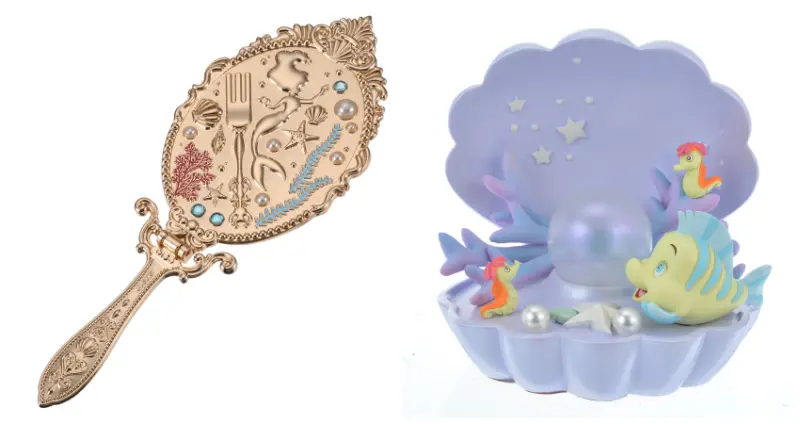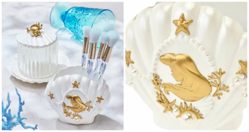 女性平常最常使用的化妝品,也在這次的周邊品項當中,以純白貝殼為靈感打造的「刷具架、化妝棉盒、彩妝刷具」,不管是實用性或是設計感都讓女孩們一秒就入坑;刻有愛麗兒剪影的「小美人魚浮雕手鏡」,上面還鑲有立體的珍珠和寶石,將公主的貴氣體現出來,而且手把的部分可以摺疊,因此還可作為立鏡使用。