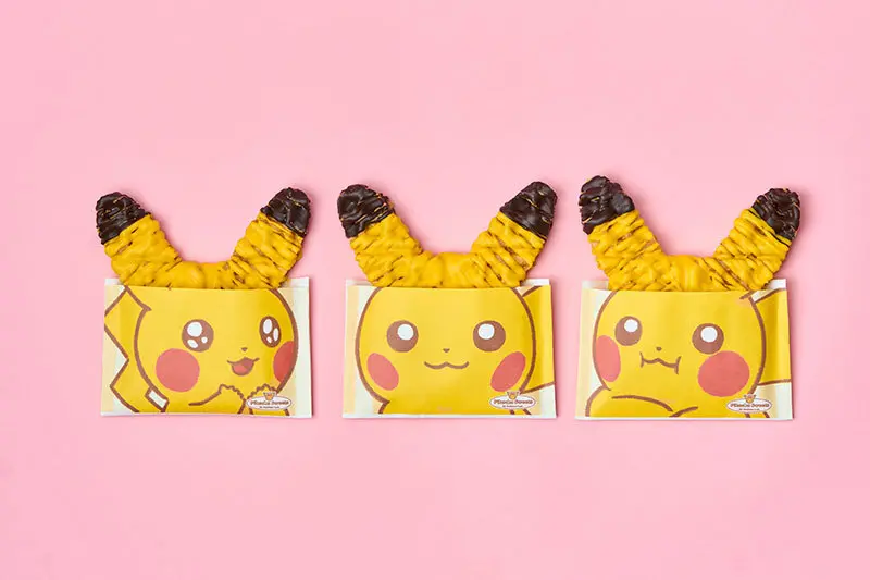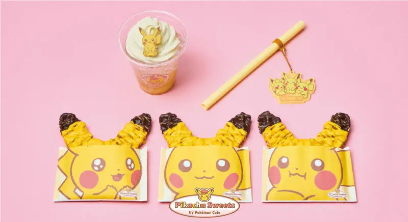 在東京日本橋與大阪心齋橋各有一間門市的「寶可夢咖啡廳Pokemon Cafe」,店內最有人氣的甜點品項就是寶可夢鬆餅,特色是在裝著鬆餅的袋子上會有大大的寶可夢圖案,而跑出袋子的部分就是鬆餅的造型,例如小火龍的「火焰尾巴鬆餅」、妙蛙種子背上的「種子鬆餅」。從4月22日開始,一口氣推出了3種圖案的「My PIKACHU」系列鬆餅,柔軟的蜂蜜口味鬆餅全部皆以皮卡丘耳朵為造型,上面再淋滿黃色與黑色的巧克力醬,不管拿到哪一款包裝,吃之前一定要先拍個過癮再開動。