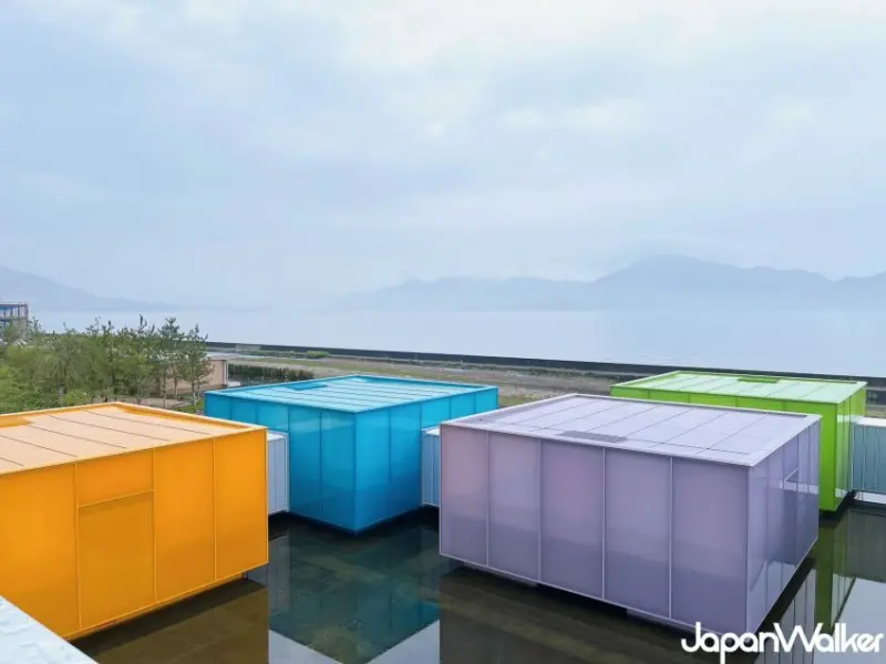 下瀨美術館之所以在開幕後立刻引起話題,不只是直接面向瀨戶內海的優越地理位置,還要歸功於日本建築界奇才「坂茂」所操刀設計的外觀及內部構造,尤其是排列在水池上的8個可移動式「貨櫃型展廳」,靈感來自於漂浮在海中的群島,呼應了瀨戶內海的地理特色,而且每個展廳的外牆顏色又相當繽紛,光是拍照打卡就已經值得讓人流連忘返;根據展覽規模的不同,各個廳之間還可使用橋樑連接或並排佈置,可說是變化多端、彈性十足。