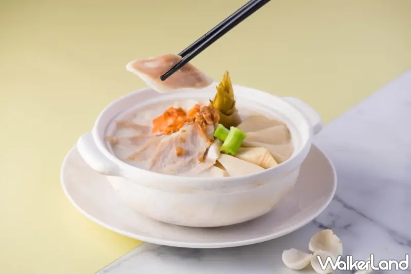 最後,「春筍百合豚片粥」粥是一種非常健康的飲食選擇,粥品種類繁多且營養豐富,相當適合春天的養生。李主廚以聚味軒招牌料理之鮮筍肘蹄醃篤鮮的湯頭為基底,主要食材為雞骨加豬大骨、松阪豬與鮮嫩的台中大坑春筍慢慢燉煮後,適逢乍暖還寒的春日也正是品筍的好時機。濃白味鮮的湯汁肉質、豐盈飽滿與清香爽口的脆筍完美搭配,軟糯的的粥品口感也更加鮮味十足。