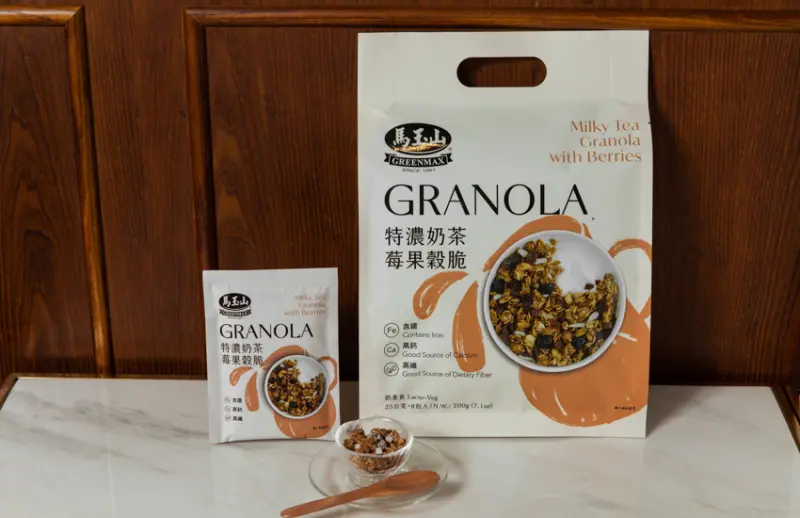 而「特濃奶茶莓果穀脆」以輕烤過的酥脆全粒燕麥片為基底,調以濃厚奶茶香氣,再搭配葡萄、蔓越莓、藍莓、草莓果乾的酸甜滋味,香濃奶茶香與莓果酸甜搭上穀粒酥脆口感,多層次的風味與鹹食意外搭配!