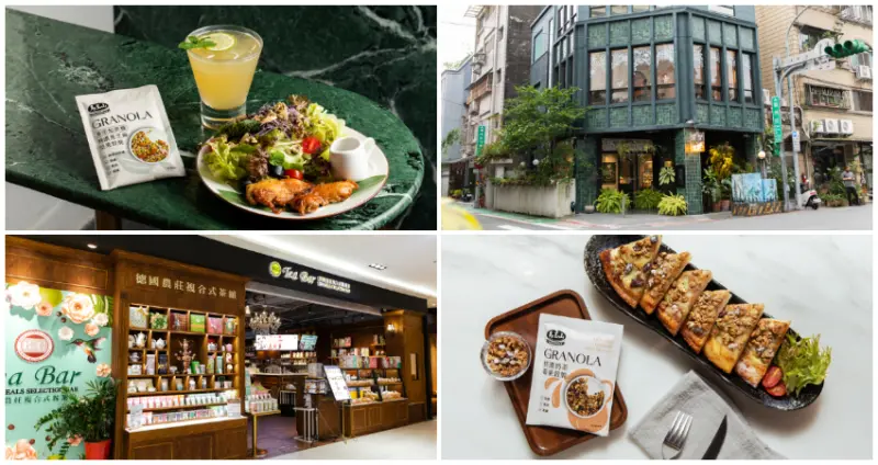 另一間與馬玉山GRANOLA輕烤穀脆期間限定合作的餐館,則是充滿著時尚歐風「B&G德國農莊複合式茶館」,其將健康理念結合東西飲食文化,提供獨創的花卉草本餐點,讓顧客能在高雅空間中,愜意享受以精緻骨瓷餐具承裝的美味餐食。