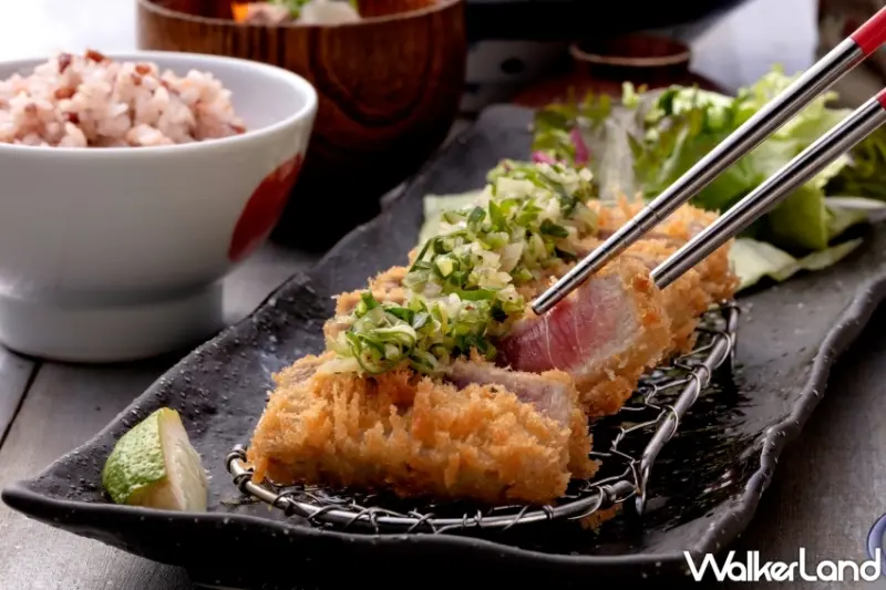最後,除了鳥丈爐端、杏桃鬆餅屋之外,還有讓許多人不知道今天吃什麼、就來個豬排飯的勝政、勝勢日式豬排也推出「鮪魚套餐」,其中勝政日式豬排「酥炸鮪魚套餐」,主廚嚴選台灣東港黃鰭鮪魚,將鮪魚裹粉後酥炸至約2~3分熟,厚切鮪魚排從剖面可看出鮮美紅粉色,「酥炸鮪魚套餐/480元」則可吃到滿口都是鮪魚肉感。另道搭配口感軟嫩腰內豬排的「酥炸鮪魚腰內豬排套餐/460元」,可以一次享用豬排與鮪魚的海陸雙美味。
