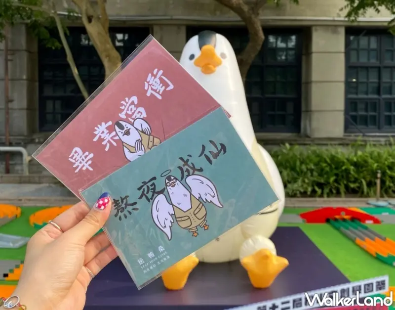 同時,園區推出2款學園祭限定款松鴨桑畢業語錄明信片-「追夢一定有風險,人生有起有落,衝刺前應無所畏懼,保有初心!」與「熬夜成仙,法力無邊」,民眾於學園祭展期間,加入「SCCP松山文創園區」LINE友,即可到松山文創園區服務中心兌換。