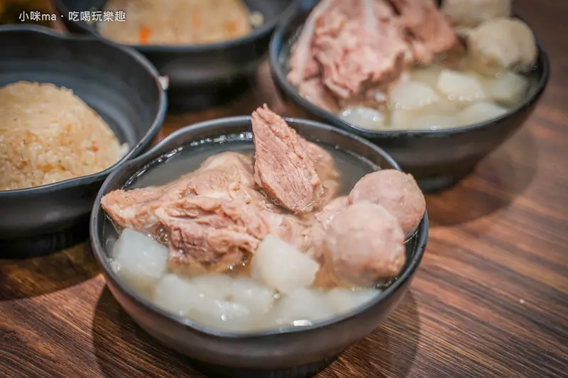 排骨肉質鮮嫩不柴,骨邊的肉更是帶有咬勁,單吃就非常好吃,光這碗湯就讓我想起媽媽的味道啊!蘿蔔已經切成丁下去熬,舌尖一壓都化開了,如果吃完排骨還有"餘胃"的話,這裡加湯不用錢。<全文介紹>
