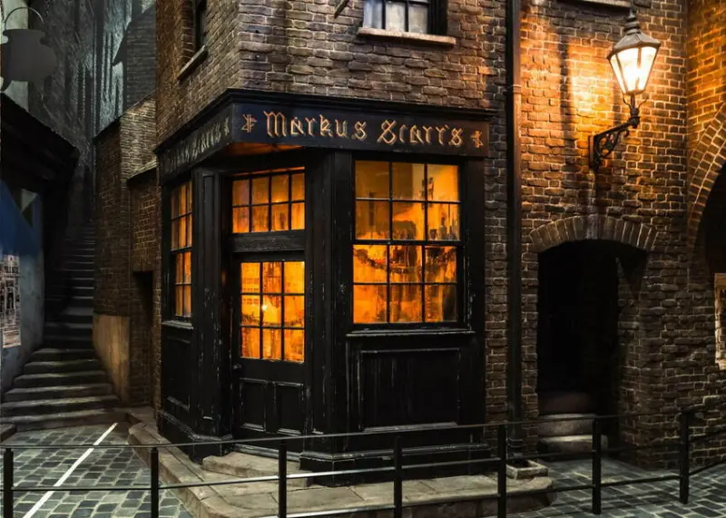 魔杖對任何擁有魔法幻想的人來說,就是夢幻般的標準配備!因此斜角巷中大名鼎鼎的「奧利凡德魔杖商店」,當然也有特別獨立出來成為拍攝場景,店內擺滿了17,000多根魔杖,最細心的是每個盒子上都標有數字和魔法符文,如此一來每個盒子都能夠快速被辨別。仔細一看,會發現裝魔杖的盒子上都塗上滿滿的灰塵,完美還原書中對於奧利凡德魔杖商店的描寫。![]()