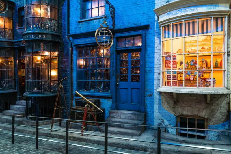 在東京哈利波特影城「Harry Potter Studio Tour」開幕前一個月,官方特別先公開了部分會出現在斜角巷區域的魔法商店建築,遊客們屆時可以一邊走在片場的街道上,一邊欣賞電影中出現的商店,享受穿梭在斜角巷的樂趣。