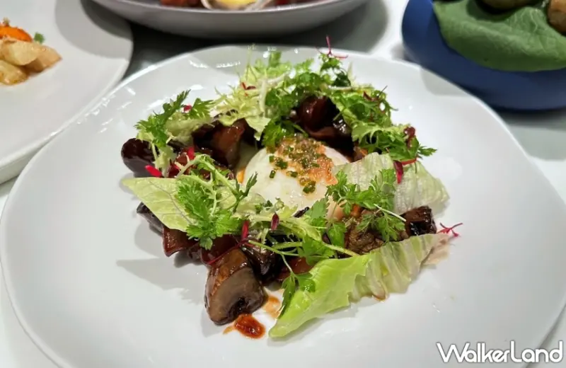 而在單點法料之中,首推適合2~3人享用的「油封鴨胗沙拉」,主廚以法式傳統油封烹調手法,將鴨胗以雞汁低溫油封8小時而成,不僅份量十足,鴨胗口感緊實有彈性,尤其特別加入水波蛋的綿密濃郁、清爽生菜的搭配,更顯延伸南法名菜油封鴨腿的新滋味。