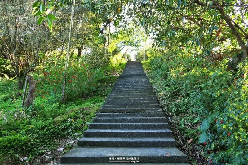 從步道入口一路走來幾乎都是像這樣的水泥樓梯,看著這長長的階梯以為會要走很久,沒想到從入口到攻頂真的就只要15分鐘,走到山頂完全沒有腿痠的感覺,非常符合懶人的我。<全文介紹>