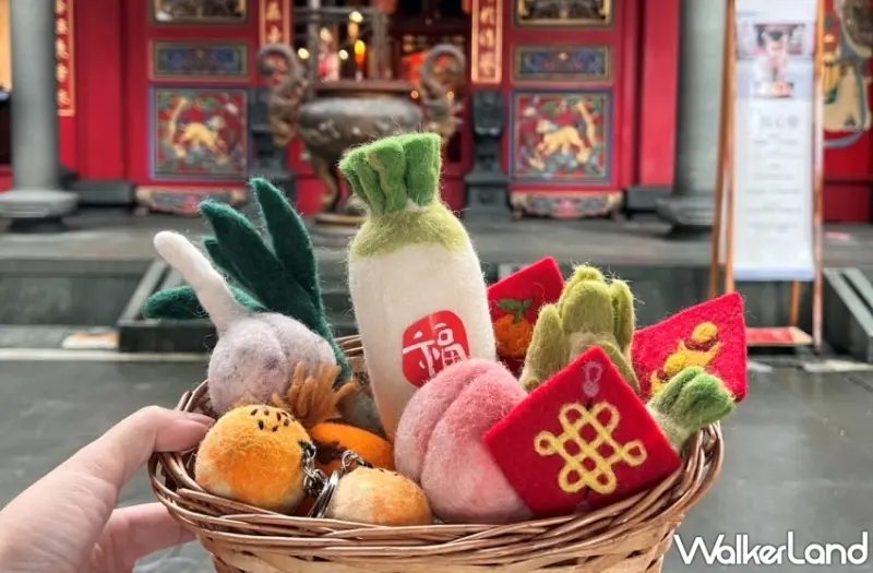 另外,宜蘭傳藝園區店家也有販售蔥明餅、狀元餅、肉粽、祈福手鍊、文昌祠魁星高皂等祈福好物。其中,新入駐的羊毛氈品牌也推出可愛又實用的拜拜組,包含竹筍(考試順利)、蘿蔔(好彩頭)、橘子(大吉大利)、壽桃(長壽健康)等造型,希望將台灣傳統代表供品蔬果,藉由手工羊毛氈將這些溫暖心意永續傳遞,隨時把福氣好運帶在身邊。