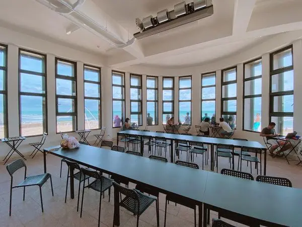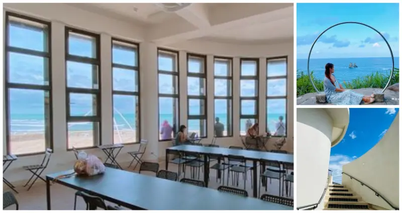 一樓遊客中心內有免費冷氣海景座位區,二樓有觀景平台視野極好,別忘了登上二樓,又是完全不同的景點,超大的景觀平台,可居高臨下欣賞整個中角灣。<全文介紹>
