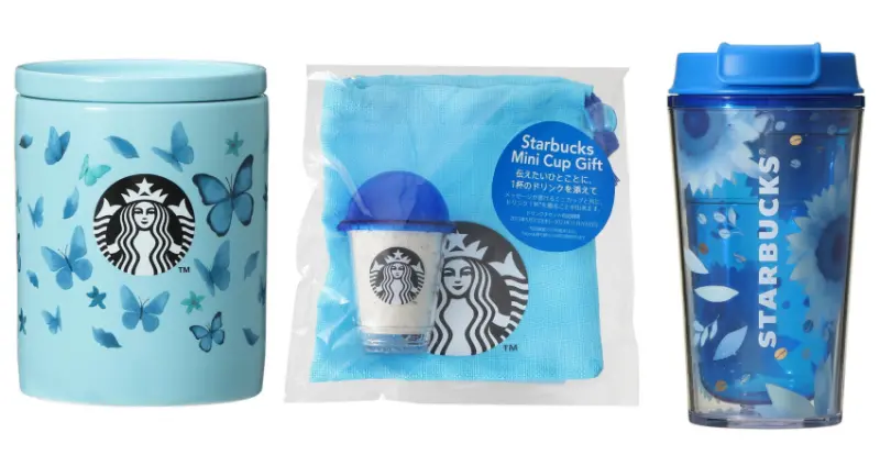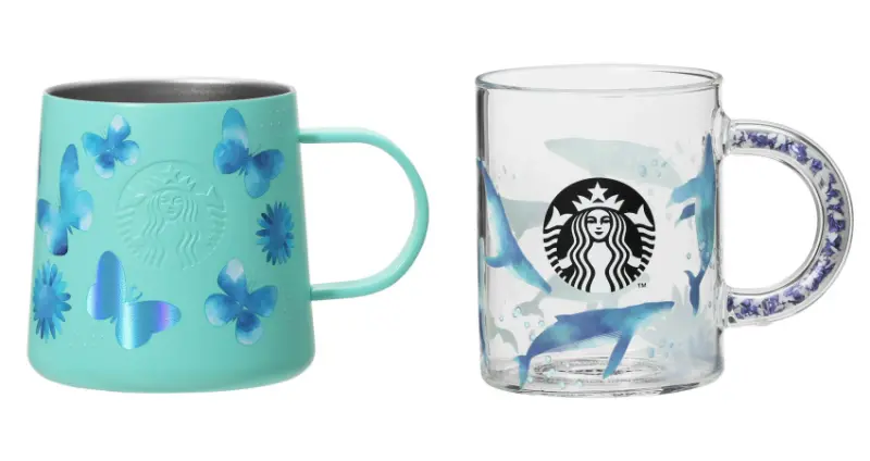 近幾年相當流行的不鏽鋼馬克杯也出現在此次的周邊當中,顏色更是許多少女們超愛的蒂芬妮綠,上面還有不少飛舞的淡藍色蝴蝶,商品一公佈就引起不少日本網友熱議,紛紛都說這次絕對要搶到這款馬克杯;另一款擁有藍白亮片把手的耐熱玻璃杯也是未上市就造成轟動的新品之一,因為杯身印有數條優游自在的鯨魚,超療癒的手繪水彩風格讓人立刻就心動。