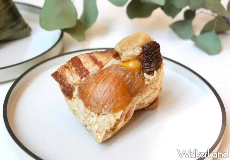 中餐主廚張得峰表示,今年共推出四款風味粽,其中「特選盆菜裹蒸粽」榮獲媒體評比裹蒸粽冠軍,每顆重約一公斤,粽餡結合山珍海味。山珍的代表紹興東坡肉選用台灣在地豬肥瘦適宜的五花部位、以紹興酒、醬油小火慢煨入味,嚐起來香味四溢、口感軟嫩外,有豐潤油脂卻不膩口。海味則有滷入蠔油鮮香的吉品鮑、干貝等,再搭上花菇、鹹蛋黃、花生、栗子、魷魚等,盡享海陸雙拼的豪華美味,尤其添入菜脯,以荷葉搭配粽葉包粽,昇華風味與香氣。![]()