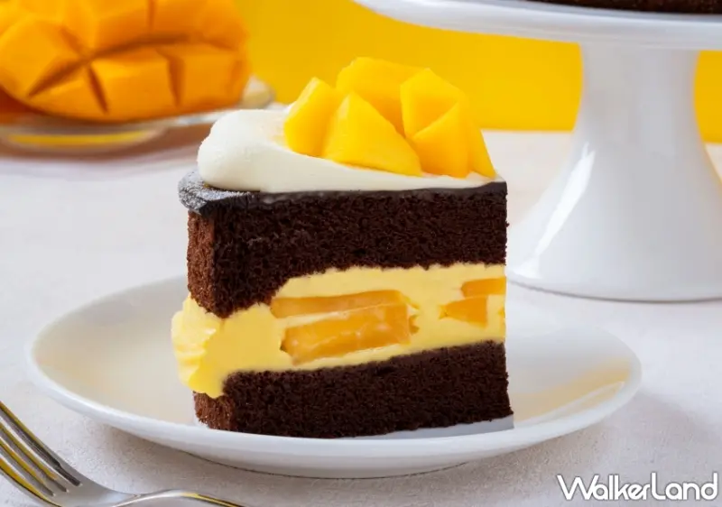人氣必吃BAC「百鑲鮮芒果蛋糕」豪邁地將份量感十足的鮮切芒果塊擺進濃郁滑順的鮮奶油中,以70% 比利時高級巧克力製成鬆軟湯種戚風蛋糕體,內層夾入果香馥郁的百香果卡士達酸甜夾餡以及飽滿的鮮芒果實,熱帶水果獨有的鮮美多汁中和大人系苦甜巧克力的濃郁風味,一口咬下香濃芒果果香飽滿迸發,滿滿夏日氣息即將狙擊每個芒果控的味蕾。