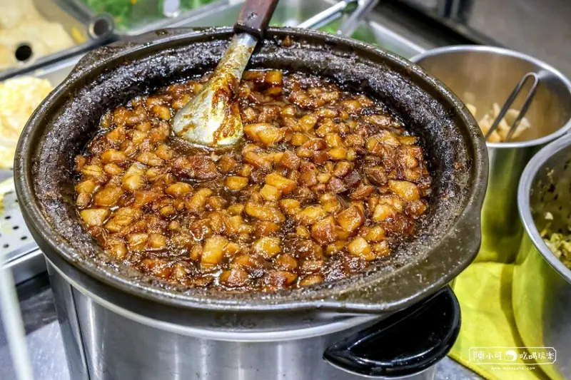 醬汁部份偏甜,魯肉是豬皮居多,吃起來微微黏口,附有醃蘿蔔和辣蘿蔔自取,配著吃更加解膩。<全文介紹>