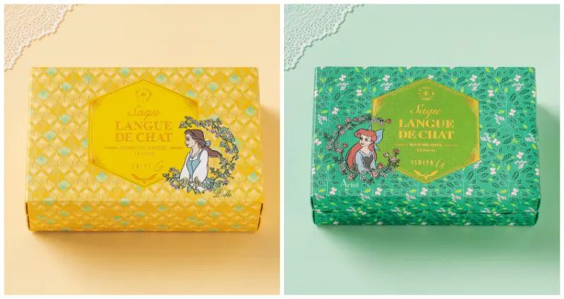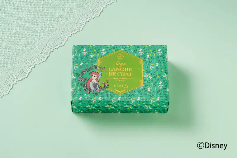 以北海道十勝產的切達起司與巧克力調和而成的「北海道起司口味」口味,包裝則採用了相當有活力的黃色,上頭印了《美女與野獸》的貝兒圖案;以繽紛綠葉為禮盒背景色的「抹茶口味」,角色則換成《小美人魚》愛麗兒,夾心內餡則使用京都西尾的抹茶加入白巧克力製作而成,讓抹茶控吃過就欲罷不能。