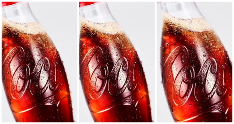 雖說這款於實體通路新登場的「裸裝版可口可樂」,沒有膠條包裝能夠標示商品名稱,但取而代之的是會使用凹凸設計,突顯出經典的波浪曲線商標,並且繼續沿用從1915年來傳承至今的流線型瓶身,因此辨識度依舊相當高。此外,由於在實體通路為分瓶販售,基於法律規定及結帳需求,仍會在可口可樂的瓶身貼上一小張的商品訊息及條碼。