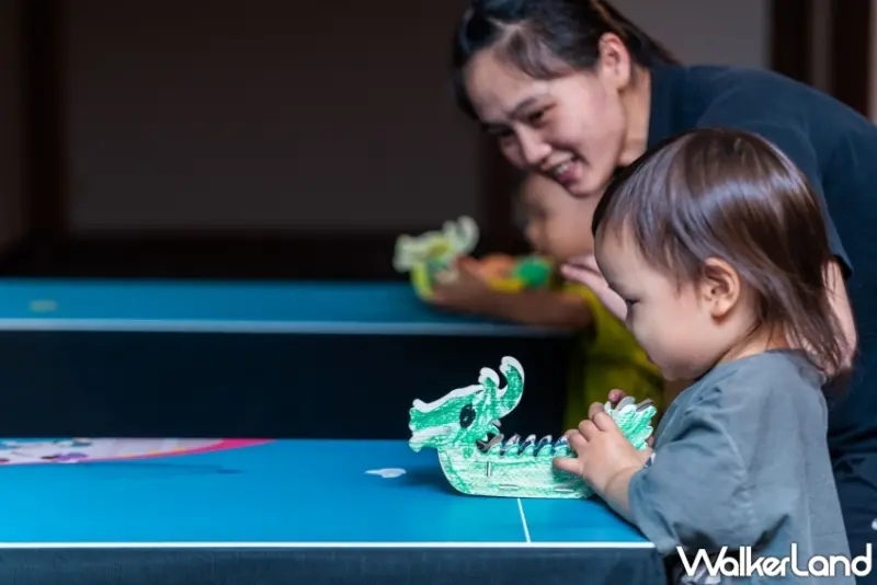 除了節慶當天的民俗活動, 6月22日至25日還有動靜兼備、適合闔家大小一起參與的「趣味划龍舟」與「艾草手工平安皂DIY」。趣味「滑」龍舟不似傳統龍舟競賽般費力,改良玩法是從製作自己專屬的龍舟開始。將木片組裝﹑彩繪,再挑戰於桌面賽道上滑行龍舟至指定區域,除了競賽的歡樂氛圍,還可獲得完成活動的小小獎勵。「艾草手工平安皂DIY」則是將端午懸掛艾草的習俗延伸,將帶有艾草香氣的精油搭配繽紛顏料,創作屬於自己的手工肥皂。