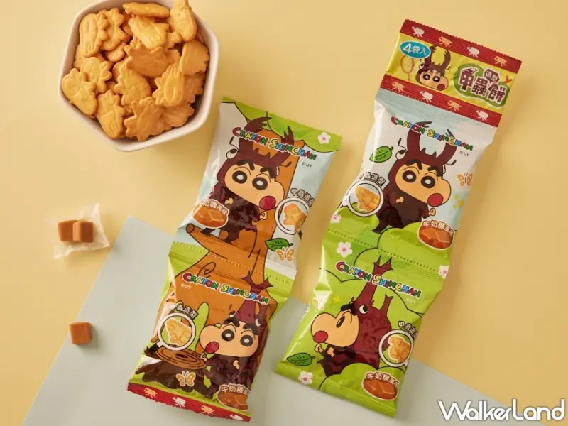 最後一個大驚喜,就是蠟筆小新甲蟲餅四連包內外都有甲蟲,外包裝是裝扮成甲蟲的小新,內容物有三款超酷炫的甲蟲形狀餅乾,牛奶糖風味香香脆脆口感,一片片都是驚喜,也是每一位小朋友、小粉絲最喜歡的零食餅乾。