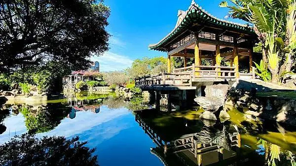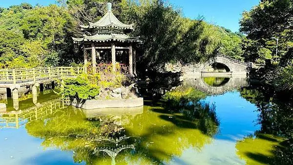 公園內除了有涼亭還有迴廊、水榭、石洞、九曲橋、假山瀑布,可環湖一圈,從各種角度欣賞不同的美~ 水中倒影美如仙境,倒影如畫<全文介紹>