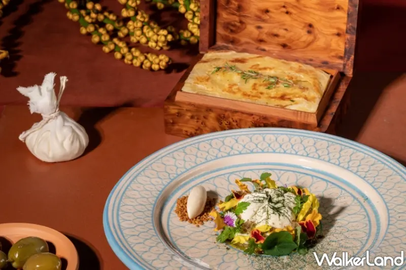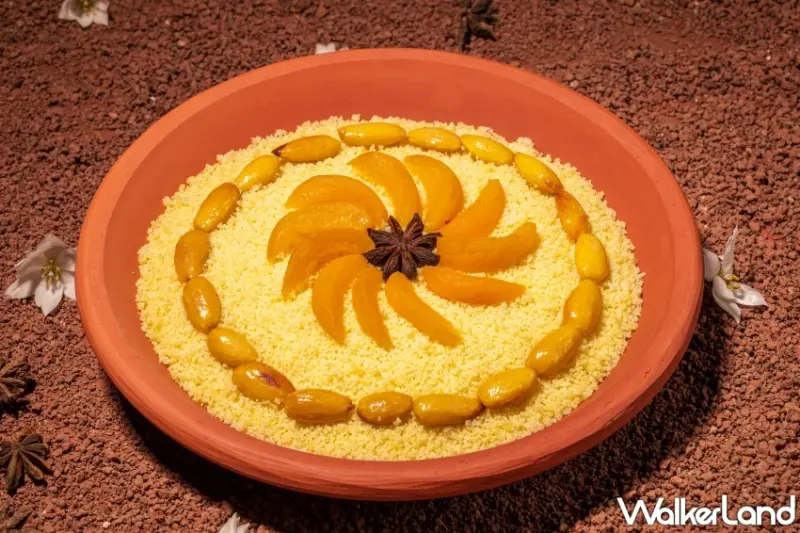以及「羊肉塔吉鍋 - 手工北非古斯米」塔吉鍋(Tangia)起源於柏柏爾文化,意指「陶皿」或「煎鍋」。特殊形貌,讓食材細火慢燉下仍保軟嫩多汁,常見於水源稀缺的沙漠地區,更是是摩洛哥風行數世紀的料理。為重現當地柴火上燉煮所帶來的煙燻風味,主廚選用木屑煙烤羊里肌及羊肩冷燻多日、再以豐富膠質及辛香風味的羊筋高湯小火慢燉兩日直至淬鍊出豐富底蘊的獨特滋味。