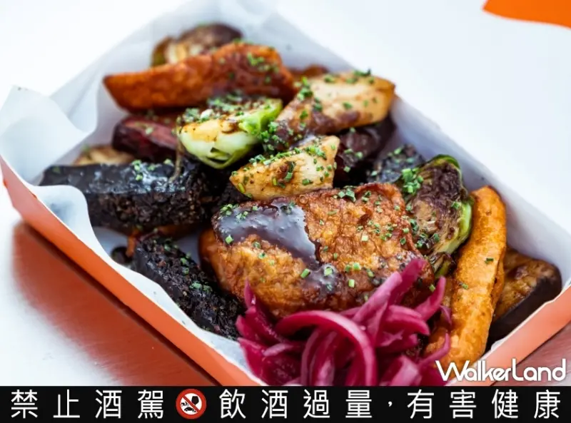 「西式炒滷味」則是將手工甜不辣、豬血糕、杏包菇以及韓式魚板,用肉汁飽滿帶有煙燻香氣的厚切培根搭配自製的巴薩米克醋與雞高湯一起拌炒,風味濃郁,口感層層堆疊,佐料的獨家醃製紫洋蔥更是畫龍點睛,增加夏日清爽滋味,兩款翻玩台式經典料理的小點別具巧思。