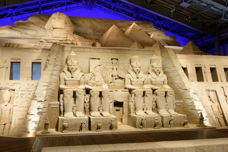 世界唯一使用沙雕刻作品素材的室內美術館,由活躍國內外的砂像彫刻家茶圓勝彦擔任總監,從海外各國召集專家,每年都會更改展示主題,像今年的主題就是第14期「砂之世界旅行・埃及編」沙雕藝術饗宴,壯麗又遼闊的模樣,讓人為之屏息。