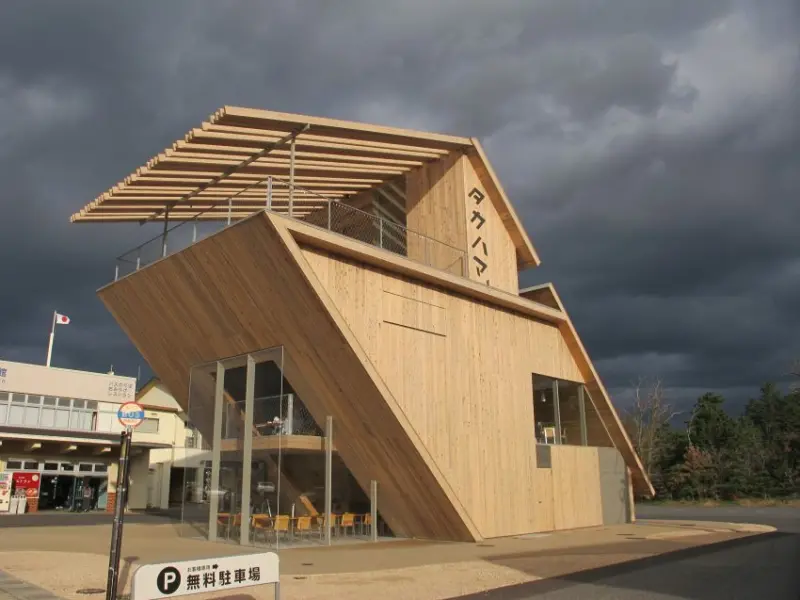 位於山陰海岸地質公園的鳥取砂丘地帶,南北橫跨2.4公里,東西縱橫16公里,是日本最大規模的砂丘。而位於鳥取砂丘入口外約9公尺的三樓層樓建築──鳥取砂丘會館旁的「高浜咖啡館Takahama Café」,由世界知名建築師隈研吾操刀設計,於2022年8月開幕,成為目前最新的鳥取砂丘打卡點之一。![]()