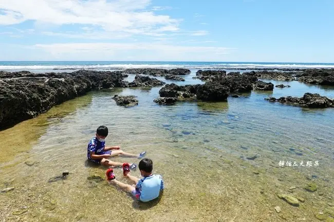 來海邊就是要搭配這樣的藍天白雲好天氣,雖然很曬很熱但景色就是特別美,好療癒的藍呀~超喜歡!海水相當清澈,退潮後露出的淺灘也很適合親子玩水,當時就有小朋友在玩水呢<全文介紹>