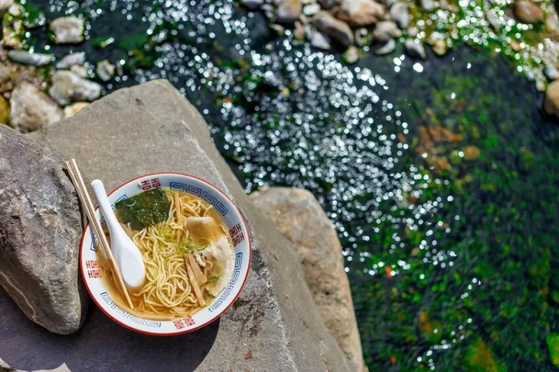 自己的足湯自己挖!秋之宮溫泉鄉的役內川,在河床上有溫泉水破口湧出,遊客可以用附近小屋準備的鐵鍬挖個洞,再用河灘的石頭圍起來,就完成了屬於自己的足湯了,還能搭配河水來調節自己喜歡的溫度,是不是超有成就感呢?此外,還可在附近的食堂點外賣,就能在享受足湯的同時,也好好祭祀自己的五臟廟。