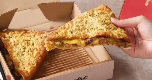 這次必勝客新品推出「起司咔滋餅」全新系列,使用三角形造型餅皮,讓人方便單手就能吃,內餡則有義式風味的「超級總匯」以及台味風格的「鐵板牛柳」2種口味選擇,都能吃得到牽絲的香濃起司,讓人在加追劇、打遊戲都能一邊享用。![]()