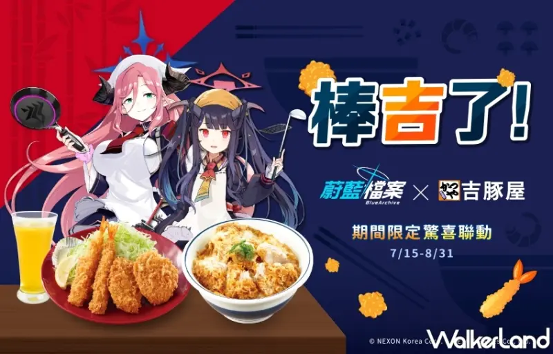 在日本吃豬排會帶來好運,在吉豚屋吃豬排會送「蔚藍檔案」玩家限量虛寶卡一張與角色插卡,讓玩家吃個豬排就帶來好運。吉豚屋館前門市則變身為蔚藍檔案主題店,就是要搶攻暑期年輕人約會逛街、玩手遊吃豬排的首選。