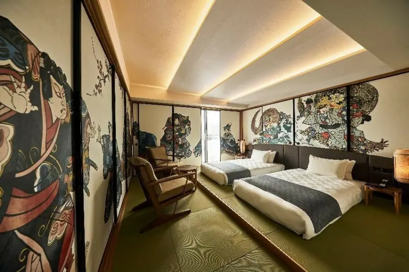 飯店共有199個客房,皆以「和」作為設計基調,並加入「歌舞伎」要素。客房特色多元,有重視機能性的標準客房,還有舖設榻榻米的舒適客房,其中設有以「淺草」、「江戶」、「歌舞伎」為主題的概念房3間,讓旅客在繪有富饒文化之趣的拉門包覆中,全然置身於日本傳統文化的氛圍。