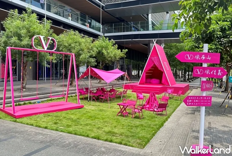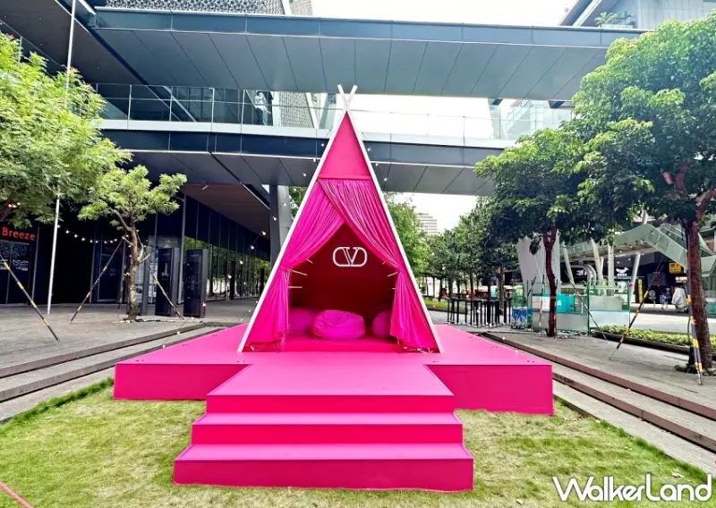 Valentino范倫鐵諾在微風南山推出的期間限定「V風粉夏PINK PP限定城市野營」活動,結合時下盛行的Outdoor戶外風氣,以品牌的PINK PP粉色風格打造,從帳篷、露營桌椅、盪鞦韆、到義式冰淇淋車,以單色符號將戶外野營昇華成充滿奢華感的時尚派對,這就是屬於Valentino范倫鐵諾的夏日粉色世界。