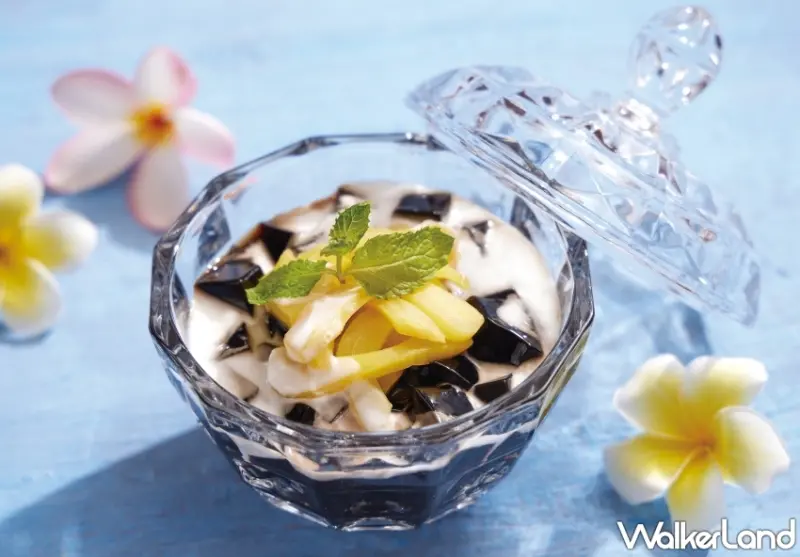 夏天當然不能少了限定甜點,以金黃地瓜和紫心地瓜製作,吃得到軟糯地瓜的椰奶西米露,搭配上香甜炸地瓜片的「紫芋摩摩」,另一款以消暑的嫩彈黑鮮草凍,搭配上純濃椰奶與手熬黑糖蜜的「仙草椰奶波羅蜜」,甜軟波羅蜜散發獨特芳香,蜜香陣陣、解暑必嚐。