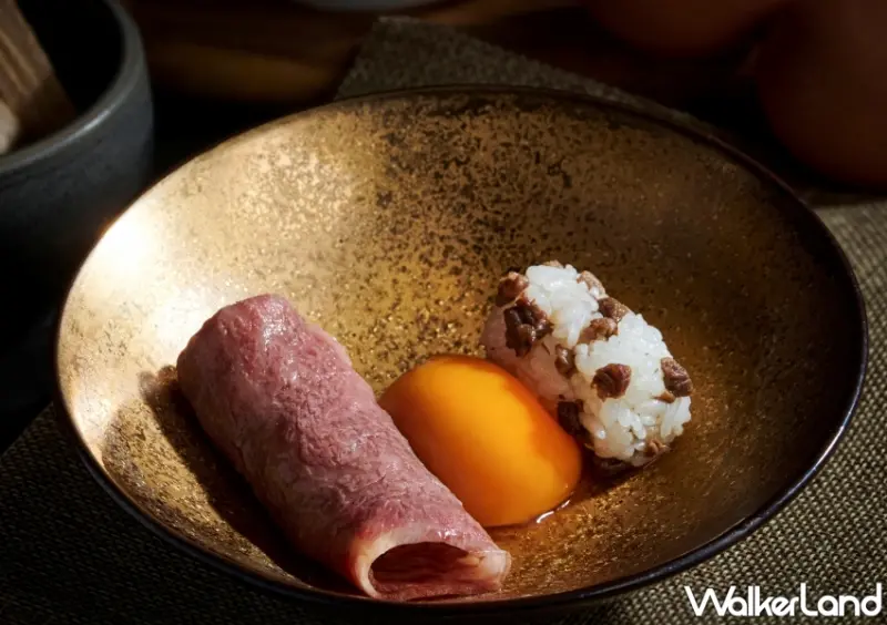 在USHIO的理念中,「和牛赤身」各個部位皆有其獨特風情,透過細嚼慢嚥的咀嚼,慢食氛圍引導舌尖的起、承、轉、合,更能品嚐出A5和牛不同的滋味。