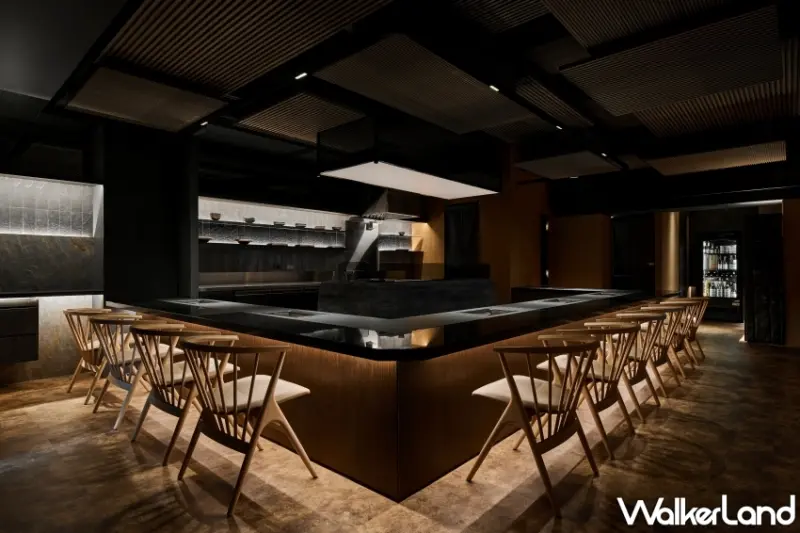一樓的板前設計絕對是USHIO亮眼的主視覺,ㄇ字型的黑色吧檯,嵌入自日本進口的烤爐,一樓僅備有14個座位,讓前來品味的饕客,都是萬中選一的主角。板前吧台的營造,除了讓每個顧客都能妥善被照顧,更是讓眾人目光聚焦所在,也就是吧檯中一展巧藝的主廚。