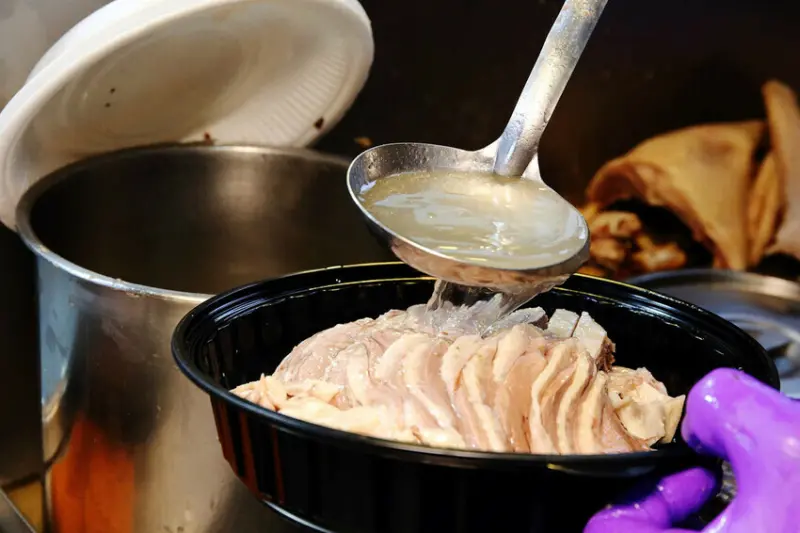鵝肉最怕遇到胸肉水分少、吃起來柴柴的的情況,可是他們家的肉完全不會,鵝肉真的夠嫩,皮也很有彈性,肉質軟嫩又多汁,完全讓人無可挑剔…<全文介紹>