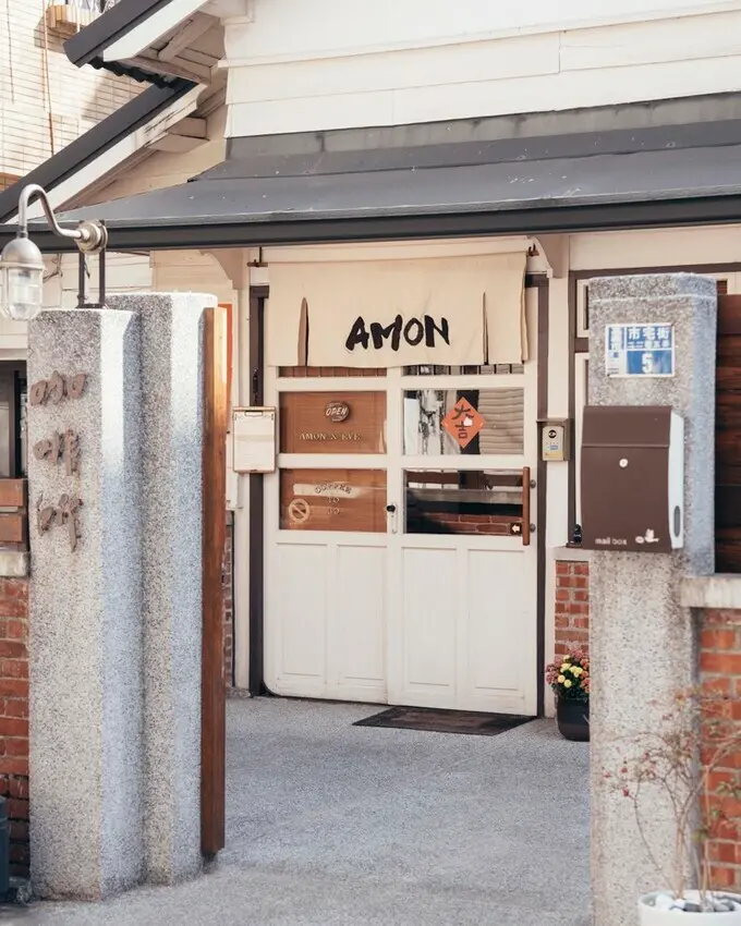 AMON咖啡所從外觀望去就有讓人放鬆想在這裡待上一個下午的感覺,可以好好品嚐咖啡以及老屋的氛圍,光影從霧玻璃照射進來人感受格外溫暖~<全文介紹>
