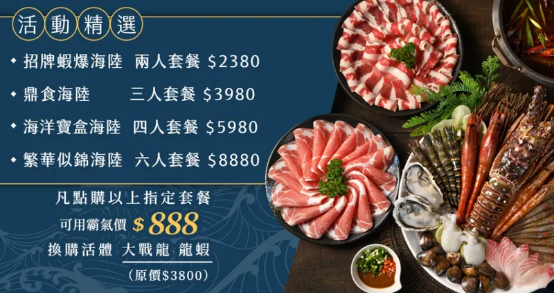 凡點購指定套餐,可用霸氣價$888換購市價3800元的特級大戰龍龍蝦![]()
