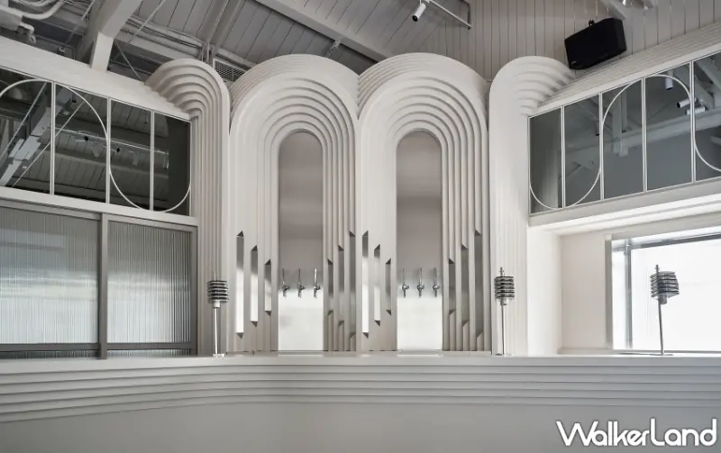 SipSip Bar & Restaurant位於華山文創園區中,以釀造米鞠時層層拋磨的精米心白色澤為底,並以不銹鋼桶釀造槽體做空間中的金屬件結構發想將歷史建物再生利用,以義大利著名建築師 Carlo Scarpa 的作品為設計靈感,致力於關注各地方歷史文化並融合創新,運用波浪般細緻的線條賦予建築柔美的生命力。