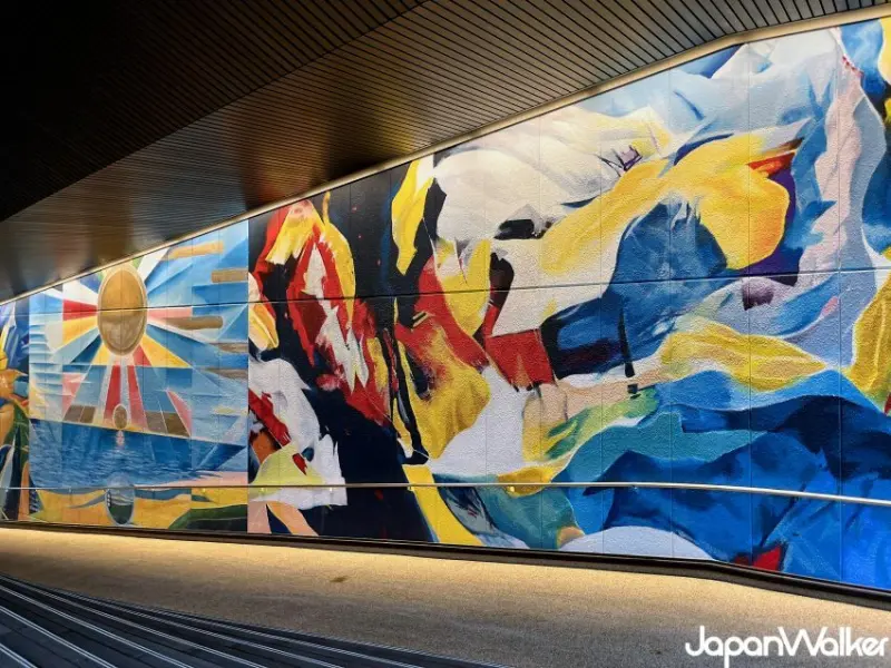 如果從13樓沿著螺旋步道下樓,將可看到每一層樓皆有各個藝術家的彩繪壁畫,還有簡單的溜滑梯可供遊客體驗。特別推薦到了12樓時,一定要入內至「紙鶴廣場」參觀體驗,這裡設有非常壯觀的玻璃「紙鶴牆」,參觀民眾可選擇自己喜歡的色紙摺成紙鶴,放入玻璃牆的箱口後,一隻隻乘載著世界各國旅人的祈禱紙鶴,就會填滿這片紙鶴牆。